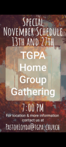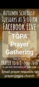 To ask for prayer, contact us during the Live Stream via the comments or @ Prayer@tgpa.church